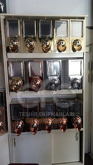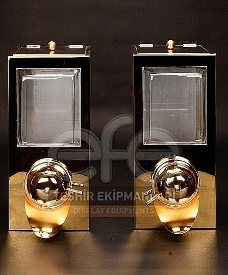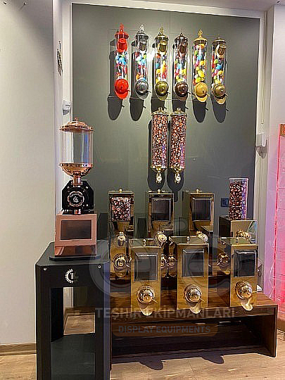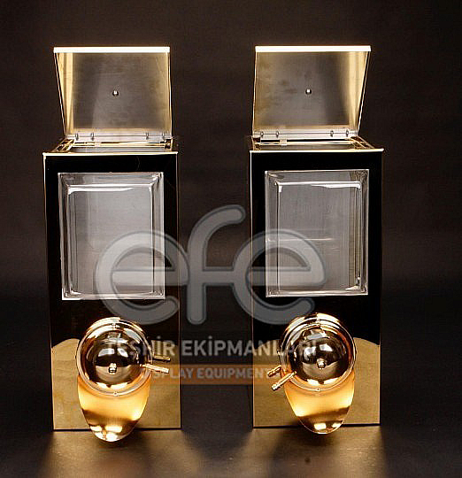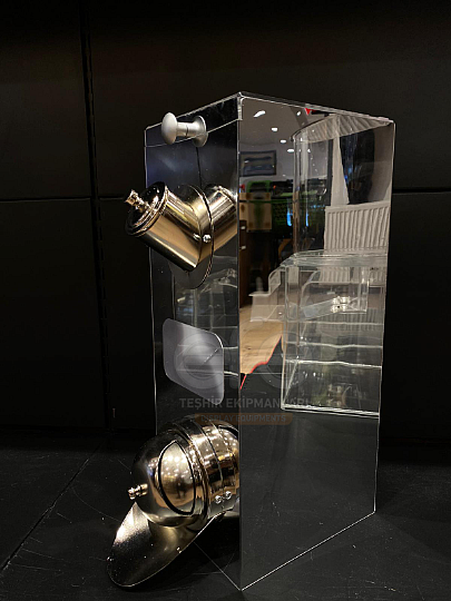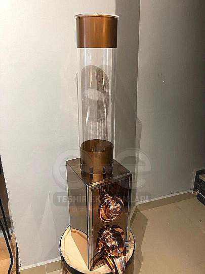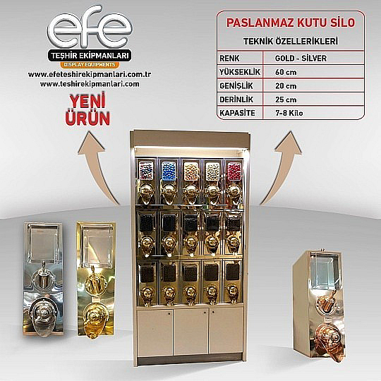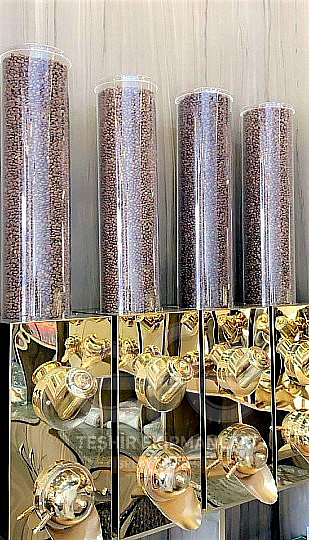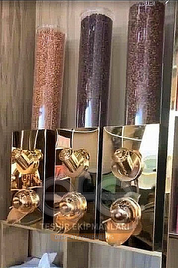 AYNALI PLEKSİ KAPLAMALI OLAN SİLO, İÇERİSİNDE DÖKME GIDA, DRAJE VE KAHVE GİBİ ÜRÜNLERİ ESTETİK BİR ŞEKİLDE TEŞHİR ETMENİZİ SAĞLAR.