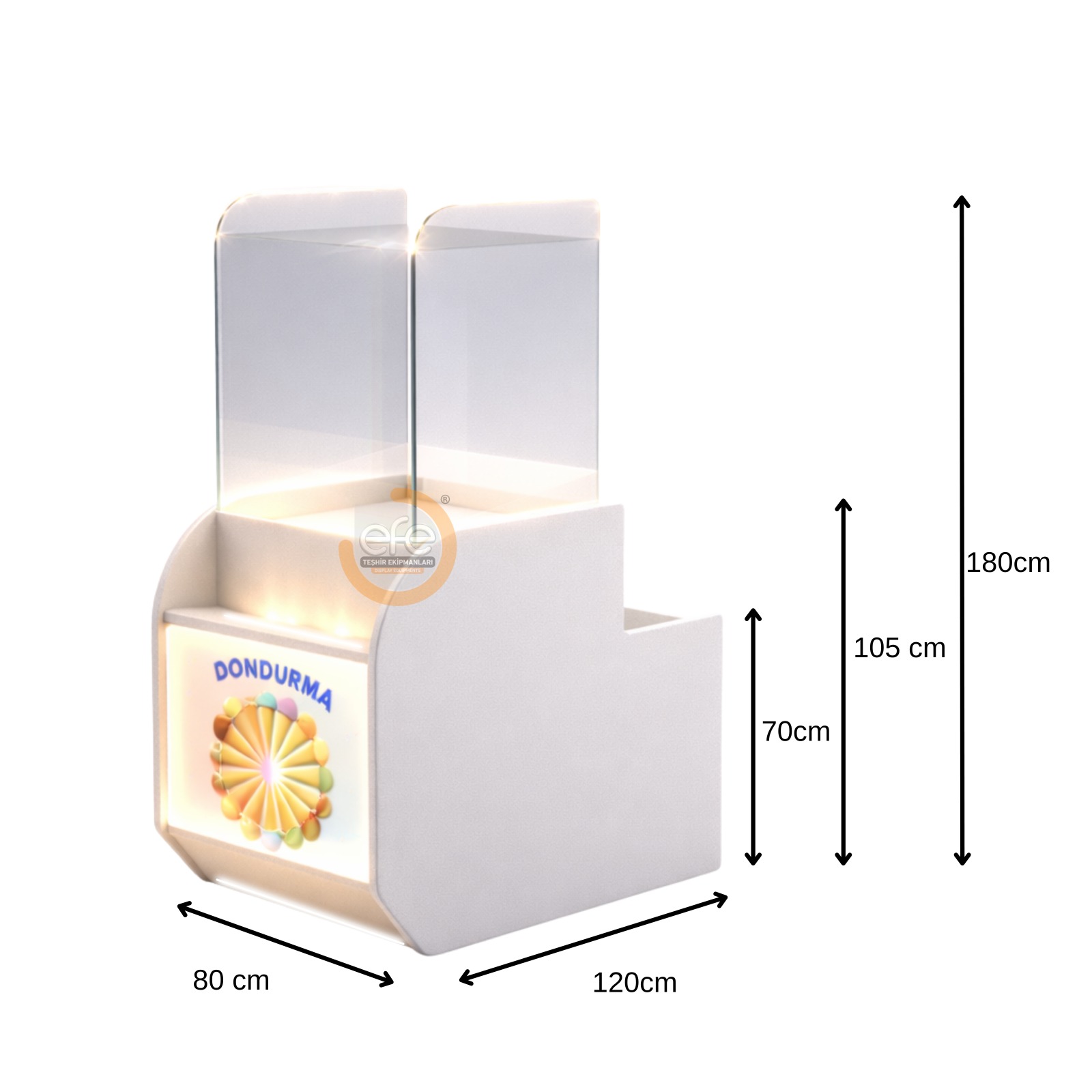 Kafe, pastane, dondurmacı ve tüm gıda işletmeleri için ideal olan bu ürün, hem işlevselliği hem de görselliği bir arada sunar.