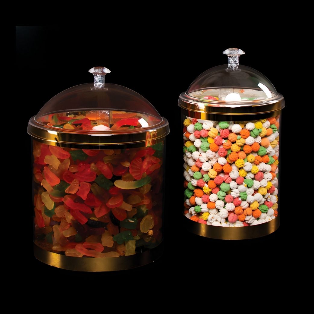 Pleksi Silindir Kavanoz, gıda ürünlerinin hijyenik, düzenli ve estetik şekilde sergilenmesi için özel olarak tasarlanmıştır. Şeffaf pleksi gövdesi sayesinde ürün içeriği net biçimde görünürken, gold detaylı kapak ve taban tasarımı ürüne premium bir görünüm kazandırır. Şekerleme, kuruyemiş, draje, kahve çekirdeği, bakliyat ve benzeri dökme ürünlerin teşhirinde ideal bir çözümdür.
