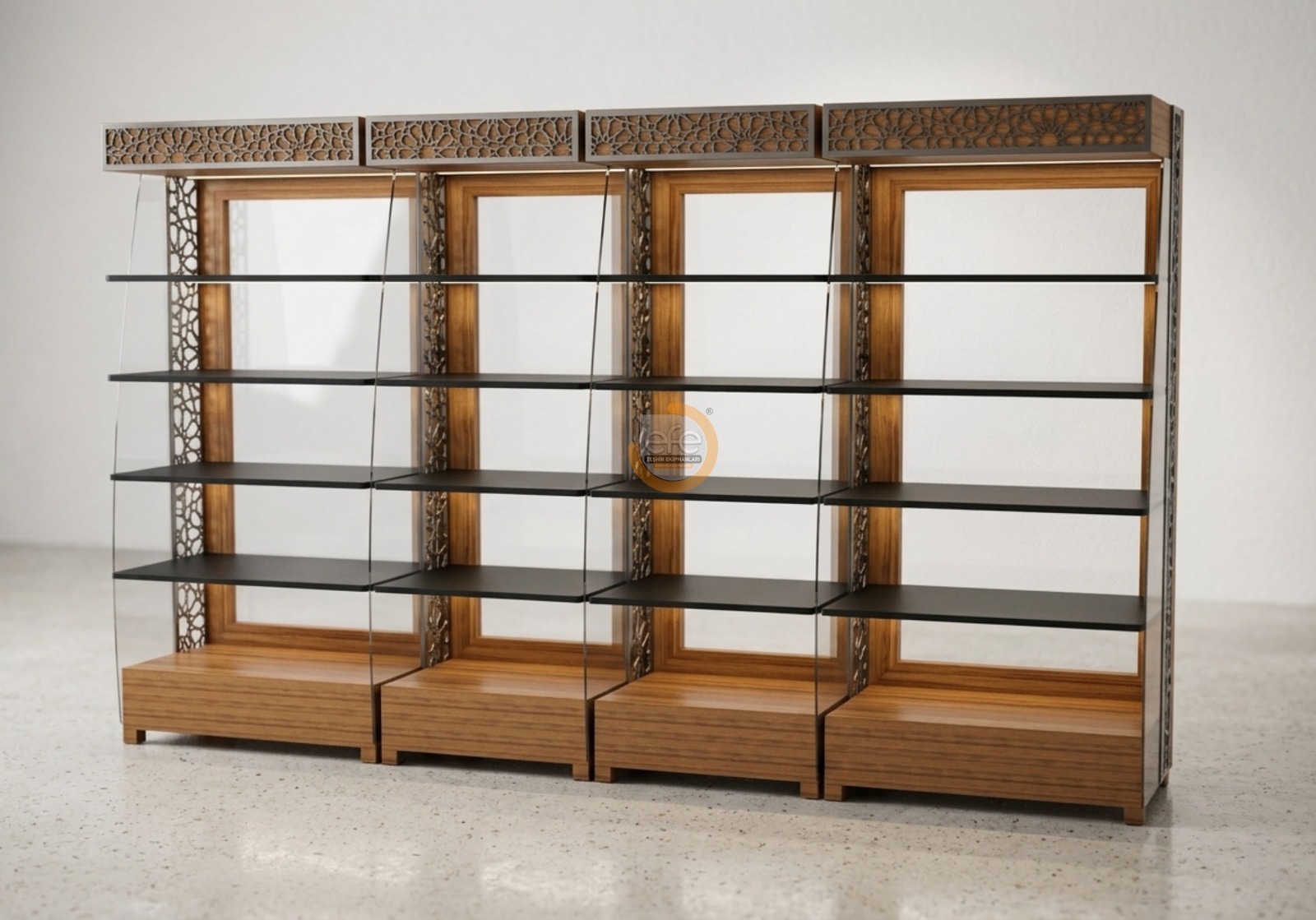 Şık tasarımı ve güçlü yapısıyla öne çıkan Prestij Raf Sistemi, mağaza ve satış alanlarınızda ürünlerinizi en etkili şekilde sergilemeniz için tasarlanmıştır. Ahşap yüzeyin doğal sıcaklığı ile gold detayların premium görünümü birleşerek bulunduğu ortama modern ve lüks bir hava katar.