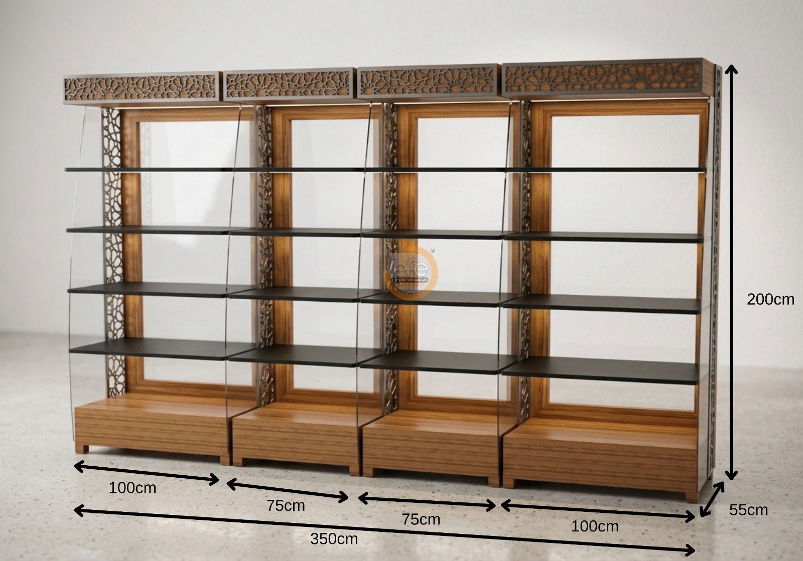Geniş raf aralıkları sayesinde farklı ürün gruplarını düzenli ve estetik bir şekilde sunabilir, mağaza içi düzeninizi profesyonel seviyeye taşıyabilirsiniz. Entegre LED aydınlatma sistemi, ürünlerinizi ön plana çıkararak müşteri dikkatini maksimum seviyeye çıkarır.